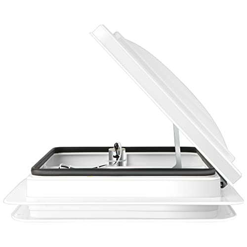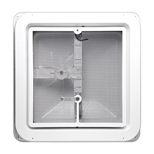 Roof vent with reversible 12V fan pushes stale air out of and pulls fresh air into your RV, camper, or enclosed trailer.