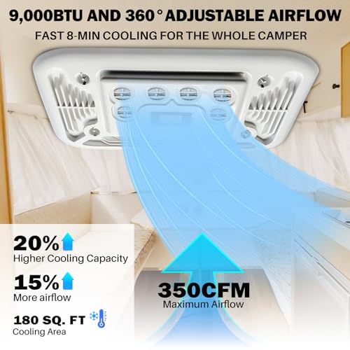 ?????Inverter Cooling & Low-noise Tech?Our inverter RV air conditoner will adjusts its operating frequency to the environment, thus reducing energy consumption. The a/c unit is equipped with a household-type ultra-quiet evaporator, intelligent temperature control, and operation below 45dB to create a comfortable space.