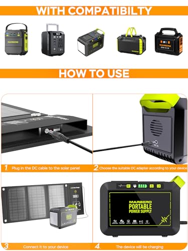 DURABLE & VERSATILE: The MARBERO portable foldable solar panel is crafted from high-quality, durable Oxford cloth and features IP65 waterproofing, dust resistance, and high-temperature durability. This portable solar charger is perfect for a wide range of outdoor activities, including camping, hiking, picnics, RV adventures, road trips, travel to remote areas, car trips, boating, power outages, and off-grid living. It’s an essential piece of emergency backup gear.