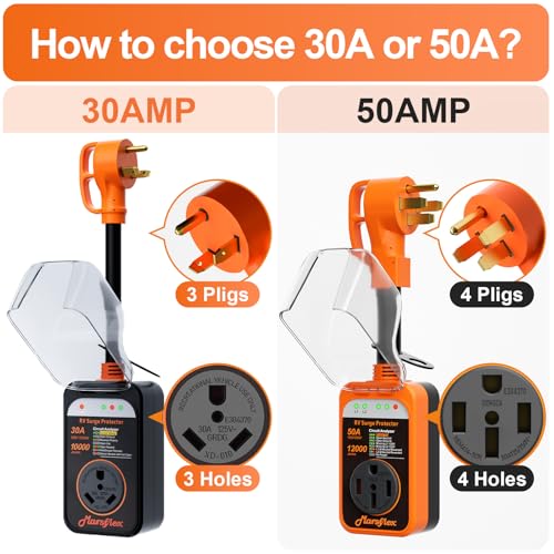 RV Surge Protector: Enhance the safety of your RV's electrical system with our 30 amp rv surge protector. Providing a robust 10,000Joules surge protection, it safeguards your equipment from hazardous voltage fluctuations and power surges due to thunderstorms or lightning strikes. A must-have for RVs, travel trailers, and motorhomes.
