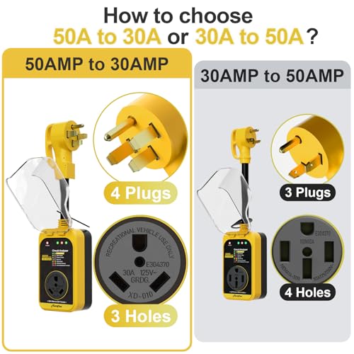 RV Surge Protector: Marsflex 50 Amp to 30 Amp RV Surge Protector enhances the safety of your RV's electrical system. Providing a robust 8000 Joules surge protection, it safeguards your equipment from hazardous voltage fluctuations and power surges due to thunderstorms or lightning strikes. Marsflex 30 Amp to 50 Amp RV surge protector is a must-have for RVs, travel trailers, and motorhomes.(Yellow)