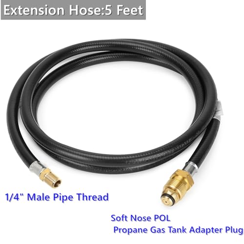 5 Feet long extension hose gives you freedom to use your portable propane appliance farther from your 20-lb or 30-lb refillable propane tank.1/4" Female NPT connector on one end connects to your propane tank or another hose.1/4" Male NPT connector on the other end connects to your appliance