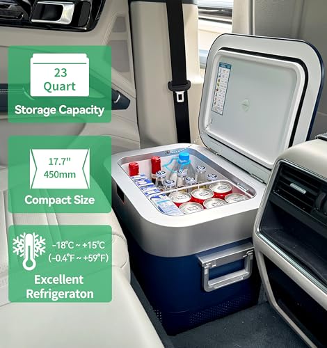 TOUCH CONTROL AND LED DISPLAY: Adjusting the temperature between -18? (-0.4?) and +15? (59?) on the Touch Screen; it can be a portable refrigerator or a portable freezer, the HIPS inner tank can hold not only food and drinks but also ice cream, meat, and other items; the round design of the fitting makes cleaning easy. The removable baskets can be your food tray.
