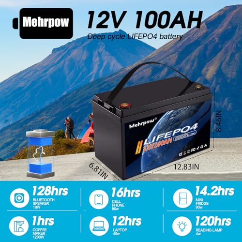 ?Best Service?Mehrpow 100ah LiFePO4 battery contains 4000-15000 cycle times, each lithium battery can run for more than 10 years, With our professional technical support team, 5-year warranty?No worries at all