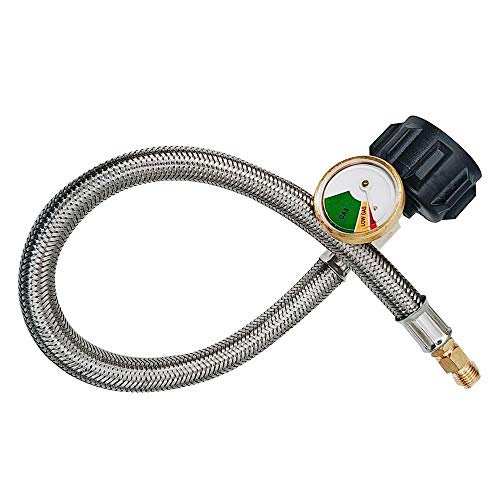 Connect your Standard Two-Stage Regulator to a QCC1 5lb to 40lb LP gas tank with Gauge can check the gas volume easily , The pigtail hose can also be used to connect to an installed 4-Port Tee as an auxiliary propane supply