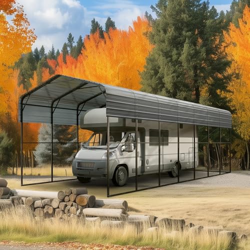 Multi Purpose Metal Carport: This versatile carport canopy garage is perfect for both homes and businesses. ample shadecarport for RV, SUV, Truck, Tractors, Boats and outdoor equipment. Additionally, this carport can be used for outdoor gatherings, or serving as an elegant event shelter for occasions like parties, weddings, and trade shows. With its gray panel roof and sleek silver frame, this carport canopy garage shelter adds a touch of grandeur and beauty to your outdoor space