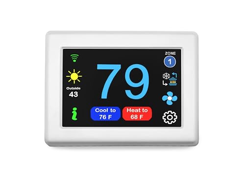 MICRO-AIR TOUCH SCREEN DIGITAL THERMOSTAT: Enhance your RV's climate control with our Micro-Air smart thermostat, designed for both RV heating and cooling systems. This device integrates with major RV AC thermostat controls and features a large, easy-to-read color touch screen (3" x 3.9" x 1.06") for straightforward adjustments. It includes wireless communication and programmable settings, making it ideal for RV thermostat replacement or upgrade.