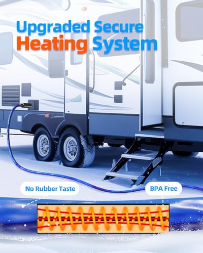 Safety Design:Our heated rv hose Lead and BPA Free,has No rubber taste to provide safe, clean drinking water for you.With 120V AC and an external ground fault circuit interrupter (CFCI) power outlet prevents overheating problems due to short circuits