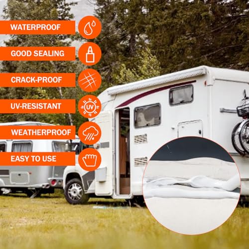 ?Versatile Applications? The rv sealant is suitable for repairing multiple parts of RVs, such as window frames, door edges, ceilings and vents. It safeguards RV roof from water damage and extends their lifespan.The rv sealant and caulking adheres to various materials, including EPDM and TPO sheets and adheres to aluminum, brass, steel, glass, wood, PVC, and TPV. It can be used without primer on surfaces other than EPDM rubber. It offers top-notch sealing with excellent moisture, dust, and air resistance, ensuring a clean surface.