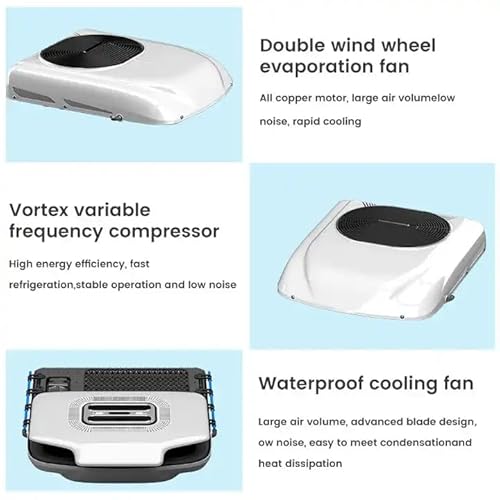 ??Appearance?The ultra-thin integrated 12V air conditioner is designed with a new streamlined structure, effectively reducing wind resistance. The interior panel is simple and atmospheric, with simple operation.