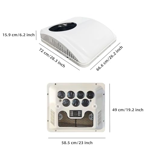 The heating and cooling electric air-conditioning integrated machine is suitable for: engineering vehicles, cranes, RV, excavators, trucks, buses, agricultural vehicles, camping vehicles, heavy trucks, etc.