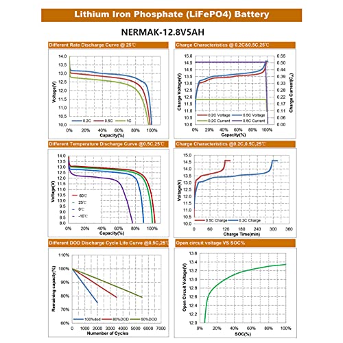 ?Superior Performance?: Lithium iron phosphate battery has high energy density, Long cycle life, Good safety performance, No memory effect, etc. NERMAK LiFePO4 battery has built-in BMS protection to prevent overcharge, Over-discharge, Over-current and short circuit, and excessive low self-discharge rate ensuring up to 1-year maintenance-free storage.