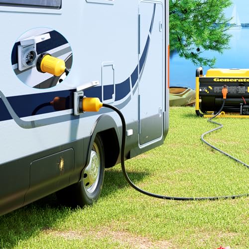 30AMP RV Power Plug Kit: NEMA L5-30P Male Plug and NEMA L5-30R Female Connector. Weather-proof boot cord protector with locking ring. Rated for 30AMP 125V, this RV Plug Kit is widely used in RVs, campers, trailers, boats, caravans, motorhomes, and vans. With a lock ring sleeve, the connector is waterproof and dustproof.