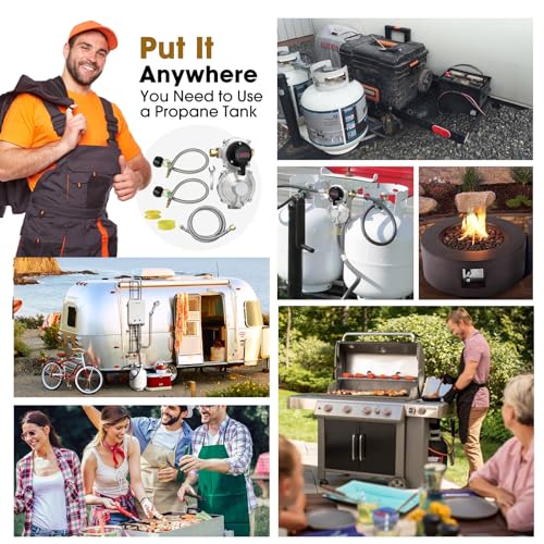 ?????Application Scenarios?This 2-Stage Auto Changeover LP Propane Gas Regulator for RV , suitable for RV with dual propane tanks. For RV/Camper/Travel Trailer. These 18" RV pigtail propane hoses with 2-stage propane regulator can connect dual 5-40 lb refillable propane tanks or LP gas tanks to your camper's 1/4" inverted male flare. Replace any existing automatic changeover regulator on your current RV, Travel Trailer, Camper, maintains constant an continuous gas.