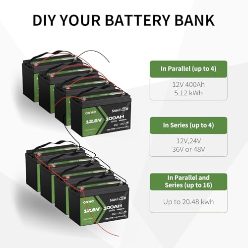 ?High Capacity Connectivity?: The battery can be connected in parallel or series for greater capacity. It allows expansion up to 4S4P, providing a maximum capacity of 400Ah 48V (51.2V). This makes it ideal for applications in solar residential systems, RVs, campers, trolling motors, and off-grid scenarios. Additionally, the battery can be charged in three ways: using a LiFePO4 battery charger (recommended 14.6V20A), solar panels with a controller, and an AC generator.