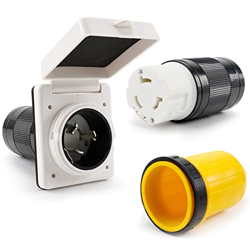 50 Amp RV Power Inlet and Connector Kit: Includes 50 amp RV power inlet receptacle ,female twist locking connector, weather-proof boot with locking ring.
