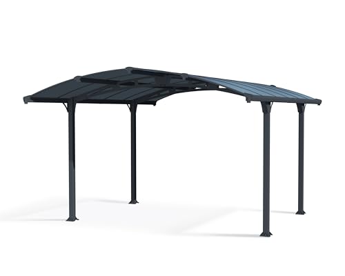 Palram - Canopia Arcadia 12 x 14 x 6.5 Carport, Heavy Duty Metal Car Port, Weather-Protected Aluminum Frame, Polycarbonate RV & Car Storage, UV Protected, DIY Truck Garage Kit, 10-Year Warranty, Gray