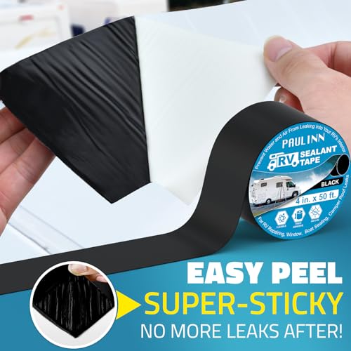 PAULINN Butyl Sealant Waterproof Tape, 4 Inch X 50 Foot RV Roof Repair Tape Black, UV & Weatherproof Roof Seal Tape for RV Camper Trailer Boat Window Sealing Leak Repair
