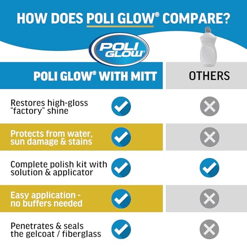 NO MORE BUFFING ‘TIL YOUR BACK BREAKS - Forget endless boat cleaning sessions. Poli Glow's gel coat restorer for boats means less time cleaning and more time enjoying your crafts. From RVs to jet skis, if it's fiberglass, Poli Glow can make it gleam. No special tools or skills required - just clean first following our simple instructions for a showroom-fresh look. It's so easy, you might look for excuses to apply it (but with Poli Glow's long-lasting results, you won't need to for years).