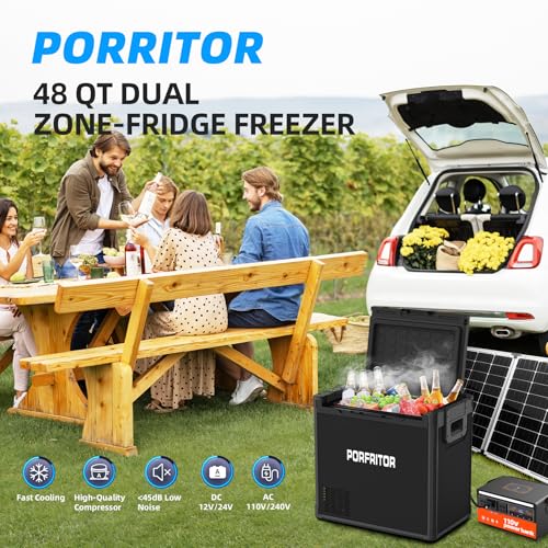 ?Dual Zone Large Capacity?12V dual zone car refrigerator is divided into refrigeration zone and freezer zone, dual temperature single control function, the middle partition can be removed to use as a single zone single temperature refrigerator, the temperature range is -4°F to 68°F. 45L/48 quart portable freezer is suitable for camping, travel, truck, home can store seafood, snacks, meat and drinks.