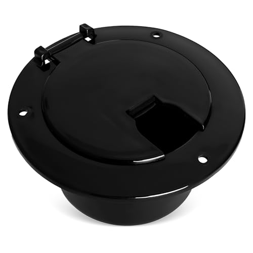?Compatibility? The round hatch cover is compatible with 30 amp and 50 amp power cords, power plugs. Replaces any round hatch up to 4-1/2".Item dimension:Outside diameter 5-1/8", cutout diameter 3-1/2", collar depth: 2-3/8", sliding door length 1-1/10", sliding door width 1".