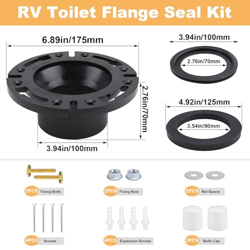 ?RV Toilet Sealing Kit?: Package includes: 385345892 RV Toilet Socket Floor Flange Kit*1, 1×385311658 Flush Seal*1, 385311652 RV Toilet Seal*1, Gland*2, Seal*1, Nut*2, Bolt*2, Self-tapping Screw*4, Expansion Screw*4. Enhance your RV toilet experience with our premium 3-in-1 RV Toilet Sealing Flange Combo Kit.