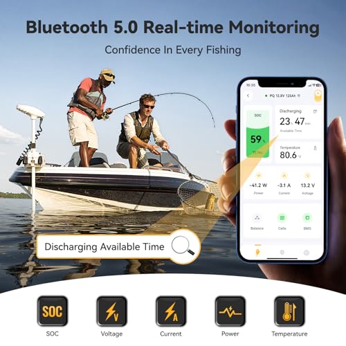 ?Bluetooth 5.0 Real-Time Monitoring & Remote Control?Power Queen 12V 125Ah LiFePO4 battery integrates advanced Bluetooth 5.0 technology. Scan the QR code on the battery top, and you can view battery data and status in real time via the Bluetooth app, including SOC, voltage, current, power, temperature, low-battery reminder, charge/discharge status, protection status, etc. No more guessing games, eliminating your power anxiety! You can also remotely control battery discharge and power off via Bluetooth (within 10 meters), putting control at your fingertips for ultimate convenience.