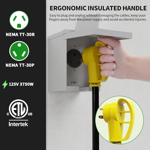 User-friendly Design: RV extension cord 30 amp have Insulated handle, more handle space, so that you can easily plug and unplug without damaging the RV cord, making it safer to use