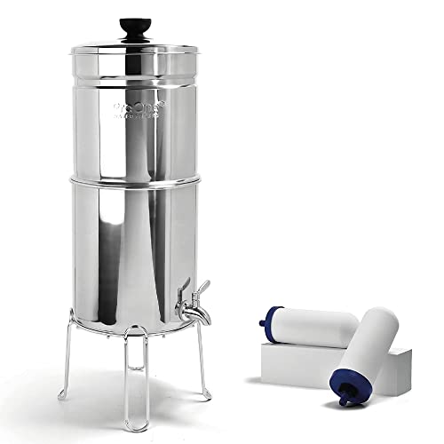 WATER-FILTER DISPENSER: Everyone needs a reliable water filter to remove chemicals and contaminants. The Traveler+ is a 2.25-gallon stainless-steel water filtration system that can go on your countertop or in your RV. This dispenser includes a wire stand for your convenience.