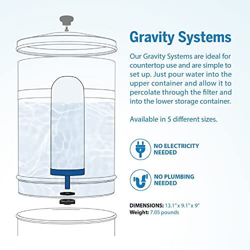 GRAVITY FILTER: Our filter helps remove contaminants from drinking water while leaving behind beneficial minerals like calcium so your entire family can enjoy healthier H2O. The ProOne G2.0 filter in this system is NSF/ANSI-42 component certified and independent lab tested to other NSF standards.
