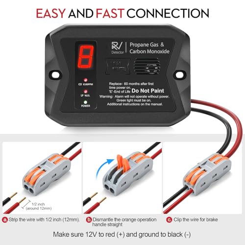 Fast Response Time: Equipped with advanced sensors, this rv carbon monoxide detector and propane alarm detects gas leaks in as little as 0.5-2 seconds, offering an early warning system to ensure your safety.