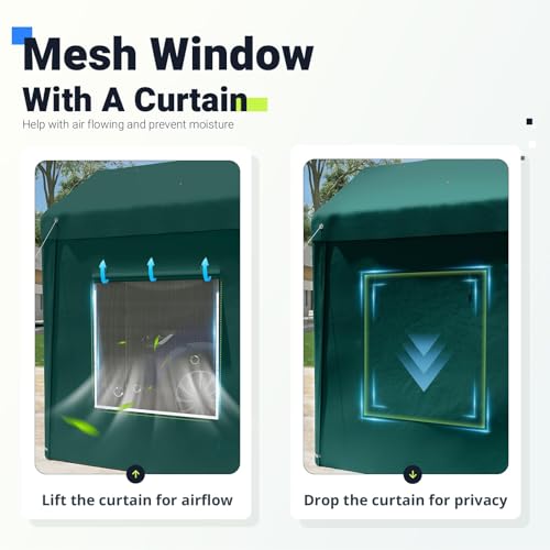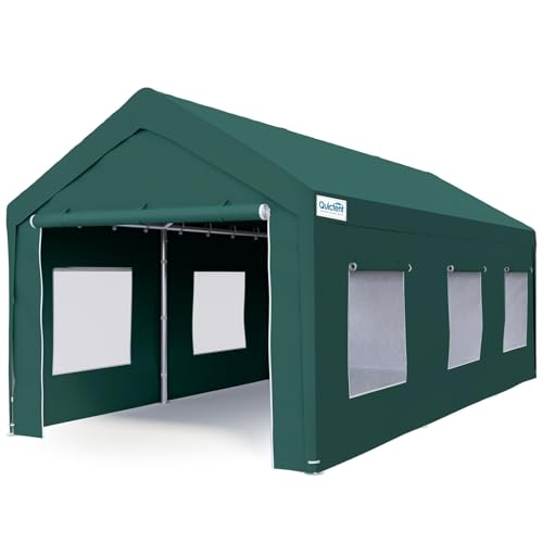 Quictent 10x20 ft Heavy Duty Carport with Roll-up Ventilated Window, Anti-Snow Garage Canopy for RV/Boat/Truck Shelter with 4 Reinforced Steel Cables-Green