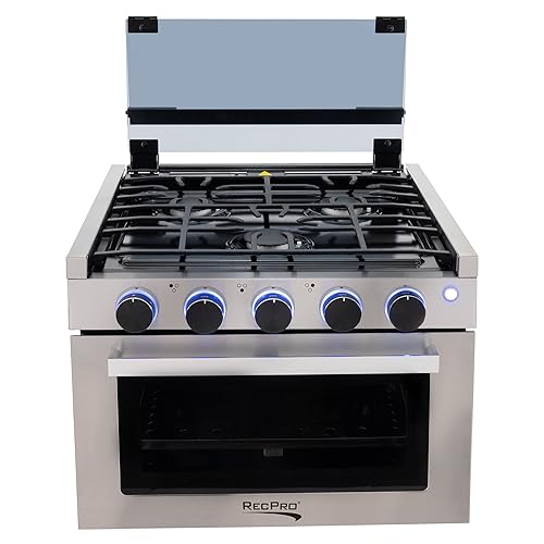 RecPro RV Stove | 21" x 17" Cooktop | 17" Tall Gas Range | 3 Burner | 1.8 Cu. Ft | 7100 BTU | Black or Silver Finish | Optional Vented Range Hood (Stainless, With Range Hood)