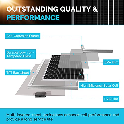 [Wide Application] 1600Wh daily output depends on the 4 hours sunlight availability.This panel is suited for applications that require a smaller footprint, making it a favorite for those with RVs, campers, caravan, boat, Green house and more.