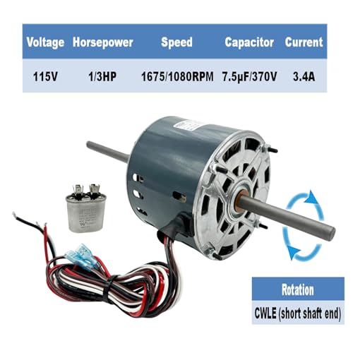 1/3HP, 1675/1080RPM, 2 SPEED, 3.4A, 115V, 60Hz Include 1 pcs capacitor 7.5?F/370V.