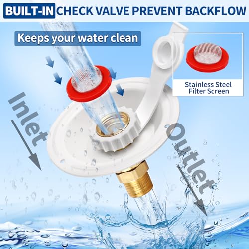 ?High Quality Materials?The Body Of Rv City Water Inlet Valve Is Lead Free Brass, Keeping Your Water Safe To Drink. The White Flange Is Made Of Sturdy Plastic. Durable Construction Allows The Check Valve Backflow Preventer To Withstand High Pressure, Temperature, Resistant To Corrosion And Frequent Daily Use.