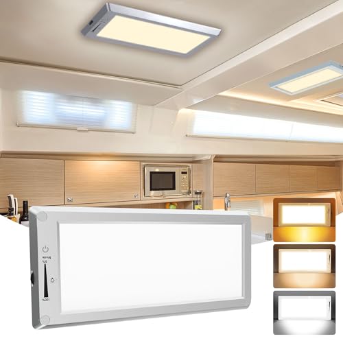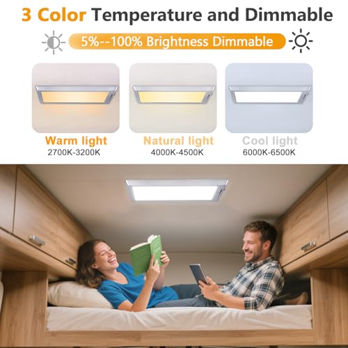 Sleek Stylish Design&Memory Function:The RV ceiling light has an Ultra-Thin design, measuring 5.5*11.8*0.5in, with a sleek ABS silver shell that exudes a modern and minimalist aesthetic.The RV ceiling light fixtures feature smart memory function, seamlessly restoring your chosen color temperature and brightness settings every time they are turned on.Say goodbye to the hassle of readjusting lights every time you turn them on, Saving Your Precious time And Energy For The Adventures That Await.