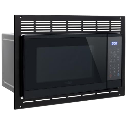 Glass turntable rotates foods to provide even cooking, Easy access door, White cavity and black outer enclosure, One piece trim kit, UL/CUL Listed
