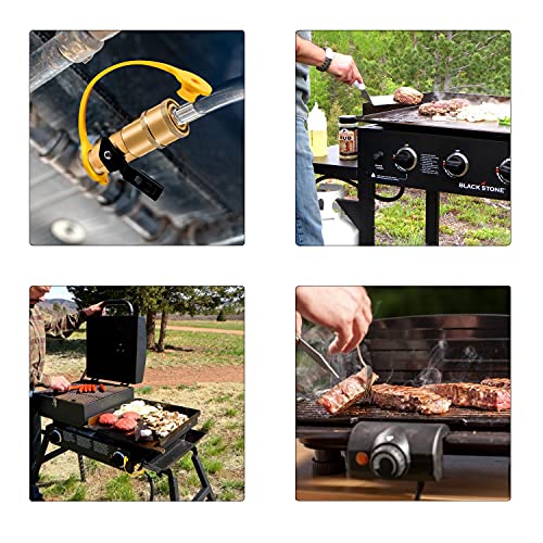 ? Wide Compatible ?- This 1/4“ Propane Quick Connect Fitting Assembly Kit fits for all low-pressure propane stoves, heaters, grills, and fire pits. Such as a camp stove, portable grill, tabletop grill, and more. Great for camping, tailgating, heating needs, or having an outdoor cookout. Bring great convenience to the BBQ.