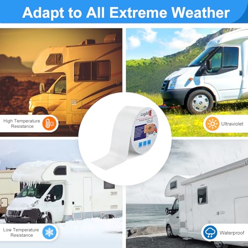 UV-Resistant and Weatherproof: This RV Roof Sealant Tape can resist UV, rain, snow, wind, and other inclement weather leaks, providing a waterproof and airtight barrier to protect your RV from extreme weather. It can handle changing outdoor temperatures with excellent heat and cold resistance and can be used in all weather conditions.