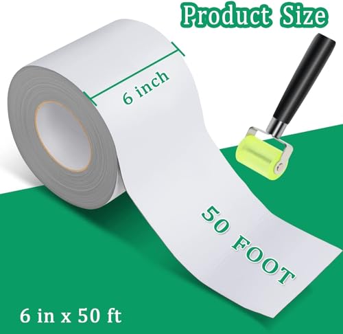 RV Roof Tape White, 6 Inch X 50 Feet RV Sealant Tape with Rubber Roller, Roof Patch Repair Tape for Camper Roof Repair, Use on Various Motorhomes Roof Surfaces, Seaming Patching Waterproof Butyl Tape
