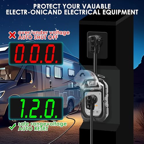 ?POWERFUL FEATURES? It has advanced circuit analysis function, including over/under voltage, reverse polarity and surge fault, which can shut down the power supply in case of emergency and ensure the safety of RV equipment compressor