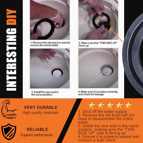 Easy to install: 1. Shut off the water supply. 2. Remove the old flush ball (no need to disassemble the entire toilet). 3. Install the new seal in the same position, making sure the "THIS SIDE UP" side is facing up. 4. Ensure it is properly seated and conduct a leak check.