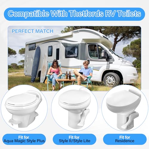 Compatibility: RV Toilet Seal Kit Replacement Parts is designed for Thetfords Aqua Magic Style Plus, Style Lite, Style II & Residence RV Toilets. Set includes: 1*34120 Waste Ball Seal (for the middle flushing position), 1*12524 Base Seal Gasket (for the bottom drainage position), 4*Plastic Gaskets, 1 Set of Mounting Hardware.