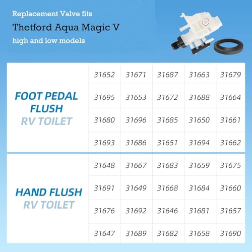 Wide Compatibility: This RV toilet valveis compatible withThetford Aqua Magic V High and Low models, including 31688, 31687, 31683, 31648, 31652, 31680, and others. Be sure to verify compatibility with your specific model before purchasing.