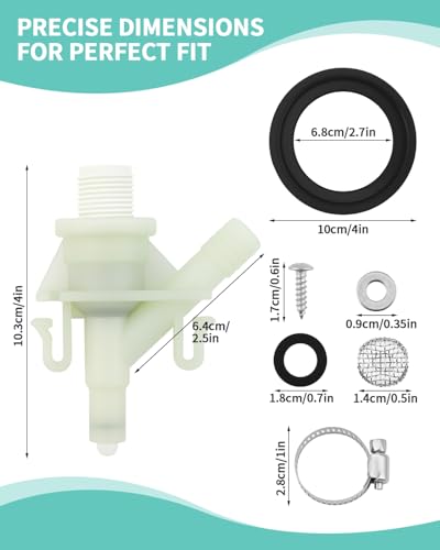 Easy to Solve Problems: These 385311641 RV toilet parts include all the parts needed to make the valve work properly, are easy to use and installation videos are also easily found online. They can solve odor and water leakage problems, provide better flushing effects, and give you a clean RV toilet. You will receive 1 toilet water valves, 1 hose clamps, 2 screws and washers, and 2 stainless steel mesh filters (for future maintenance)