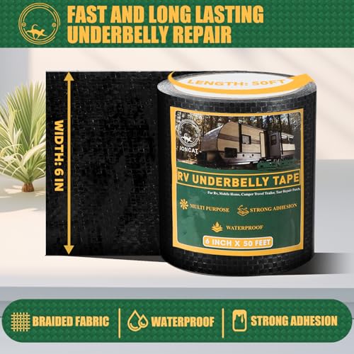 Permanent Waterproof Adhesion: The RV underbelly tape will keep your RV, Mobile Home and Camper Trailer away from moisture from getting inside . And the adhesion of the belly repair tape is mend to be permanent, no more frequently fixing bottom.