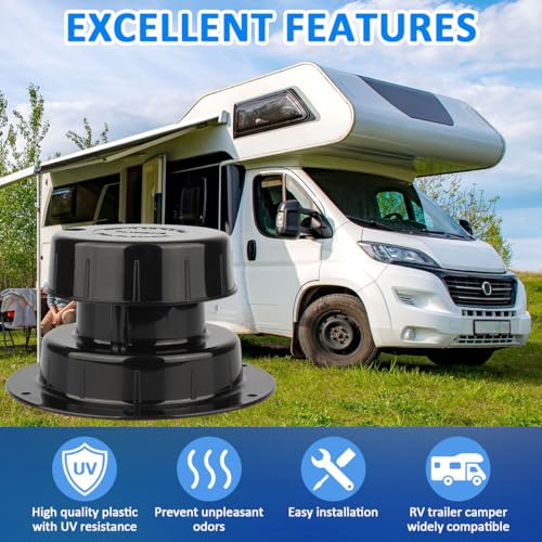 Increasing the ventilation performance inside the RV is beneficial for better air circulation, Package includes 1 packs Black RV Plumbing Vent Caps.