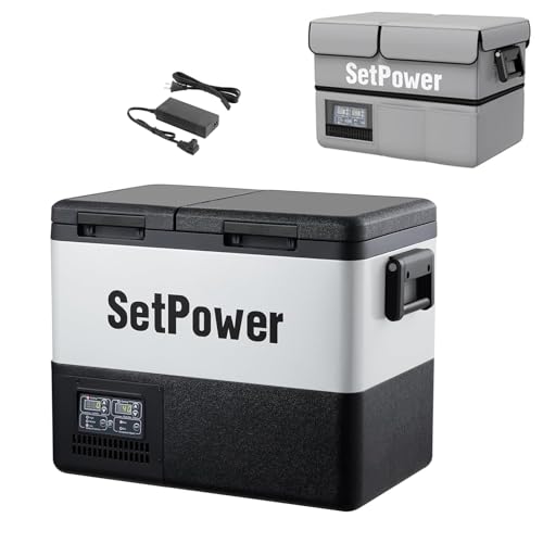35W Low Power Consumption--MAX and ECO cooling modes are optional in the Setpower portable refrigerator, consuming less than 35W/H in ECO mode and less than 52W/H in MAX mode.With Setpower powerful compressor, this car refrigerator can quickly cool from 70°F to 32°F in 15 minutes; it takes about 45 minutes to reach a minimum temperature of 0°F.