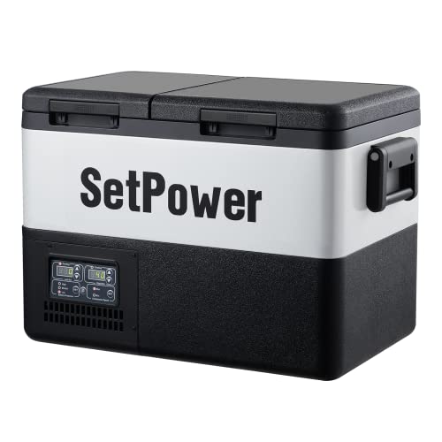 Dual Zone And Dual Temperature Control Electric Cooler: Setpower 12 Volt Refrigerator is equipped with a "true dual zone design" to avoid flavor transfer and mutual contamination of food between the two zones.And,this portable freezer can be independently controlled from 50°F to 0°F via the LCD panel.You can get a refrigerator and a freezer at the same time
